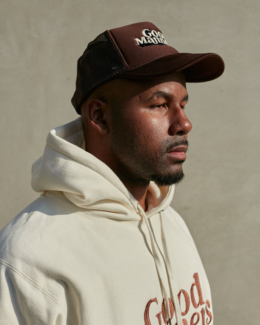 Chocolate Good Manners Logo Trucker Hat